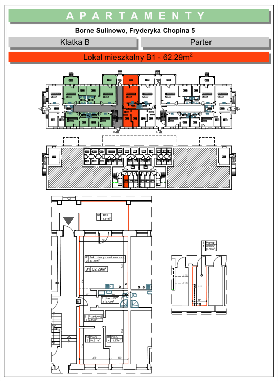 Apartament przy ul. F. Chopina 5b/1 położony na parterze, przy ul. Chopina o pow. 62,29 m2, mieszkanie posiada taras o pow. 15,51 m2, komórkę lokatorską o pow. 6,18 m2 oraz dwa miejsca postojowe na parkingu.