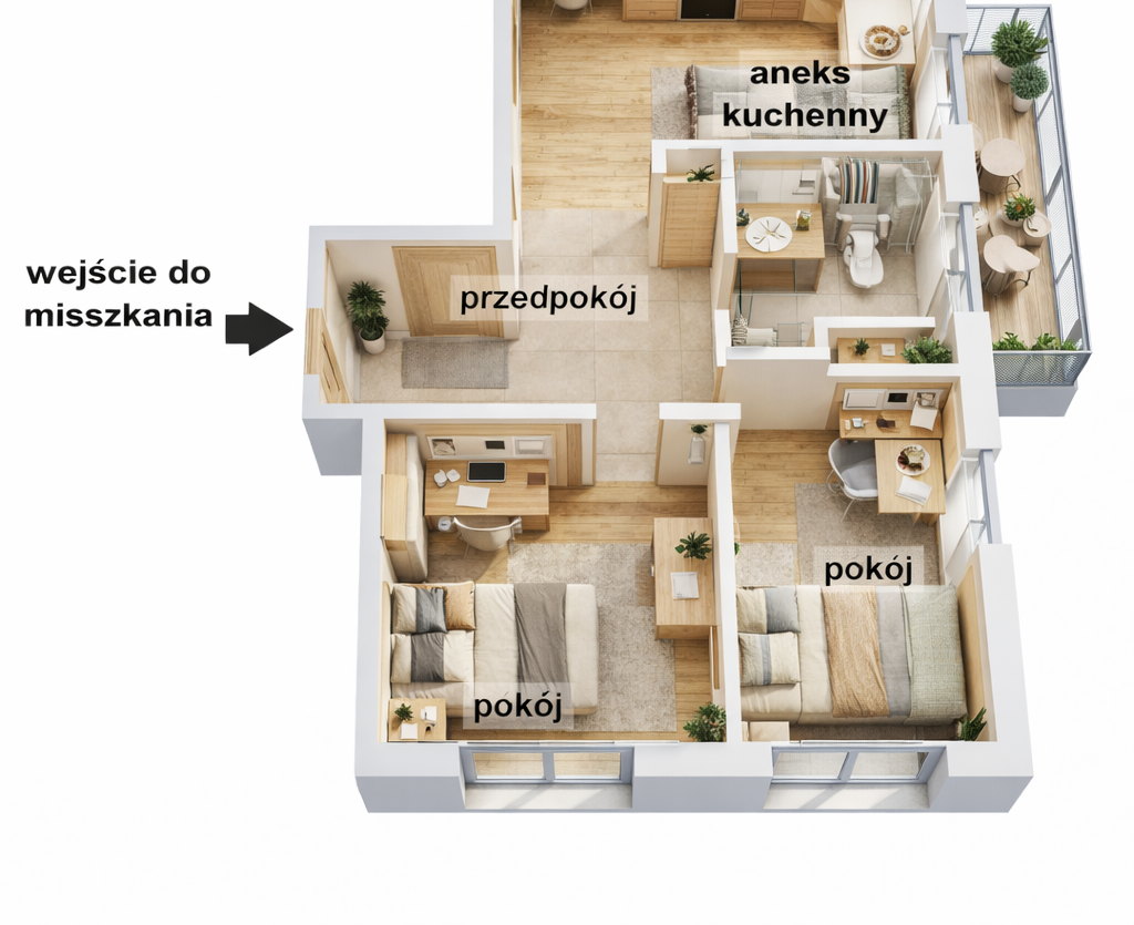 Apartament na I piętrze z tarasem. Ogrzewanie podłogowe.