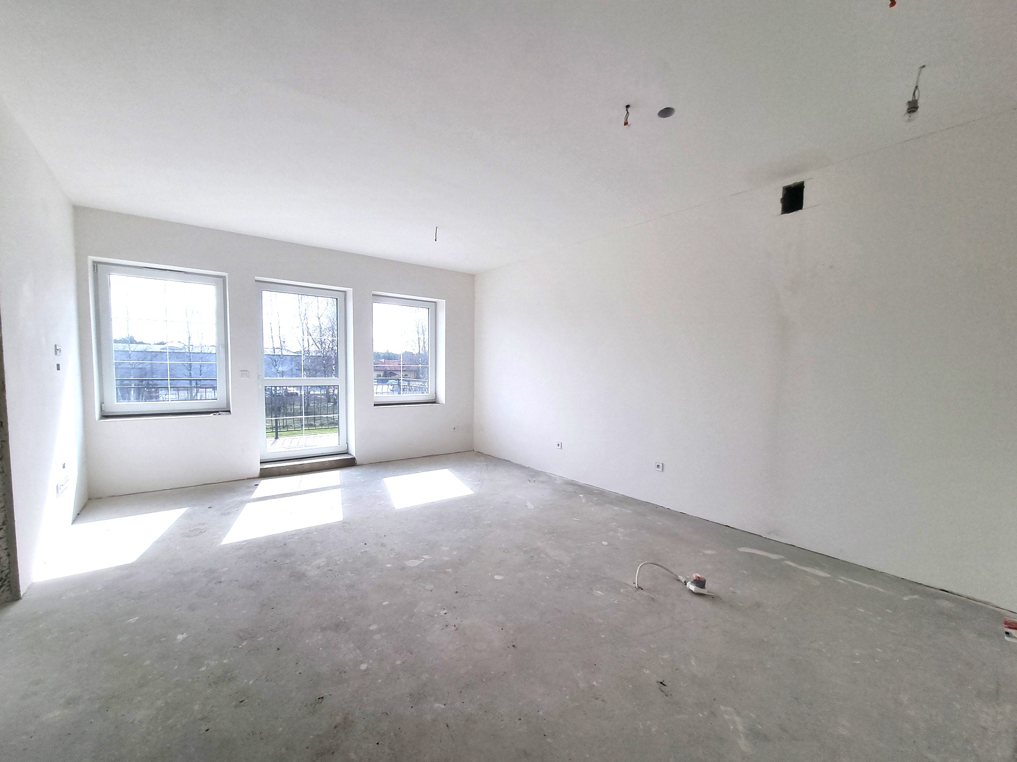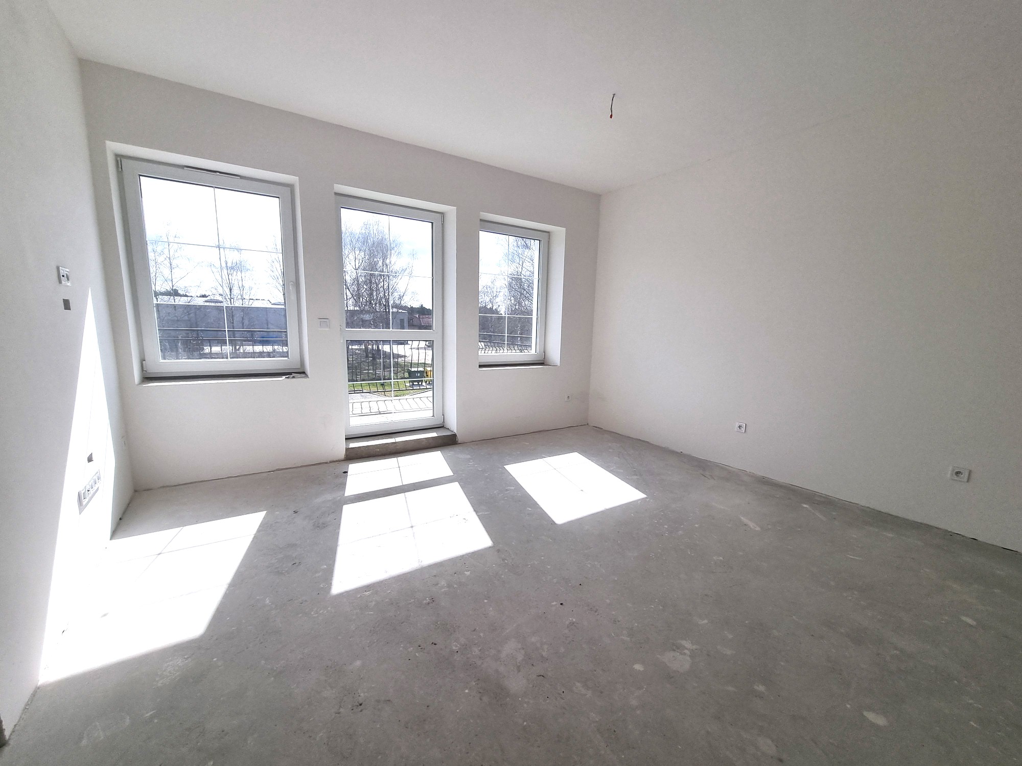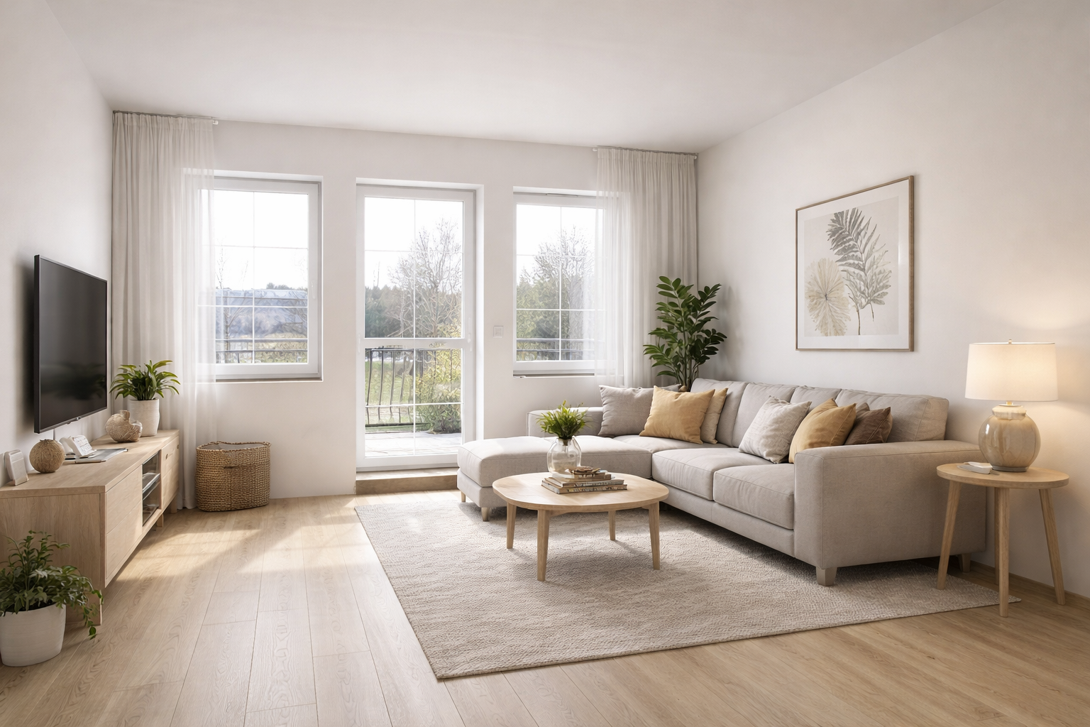 - Pokój dzienny z aneksem kuchennym – 26,42 m² – przestronna, jasna strefa dzienna z miejscem na wypoczynek i wspólne posiłki,
