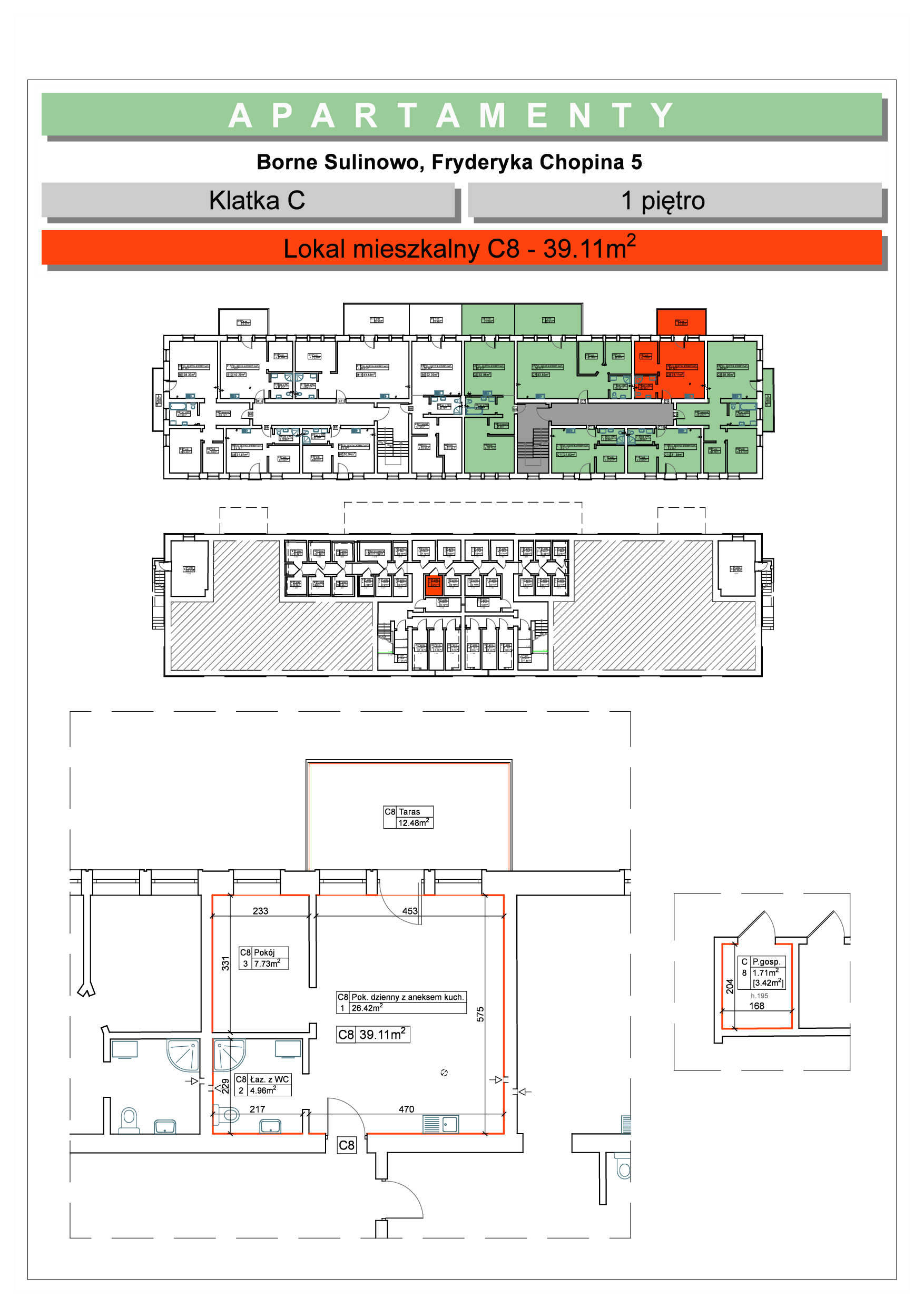 Na sprzedaż oferowany jest apartament przy ul. Fryderyka Chopina 5C/8, położony na pierwszym piętrze, o łącznej powierzchni 39,11 m². Dodatkowo do mieszkania przynależy: