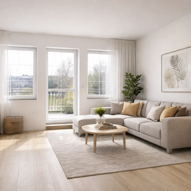 W mieszkaniu zastosowano wysokiej klasy trzyszybowe okna i drzwi balkonowe, zapewniające doskonałą izolację termiczną i akustyczną.