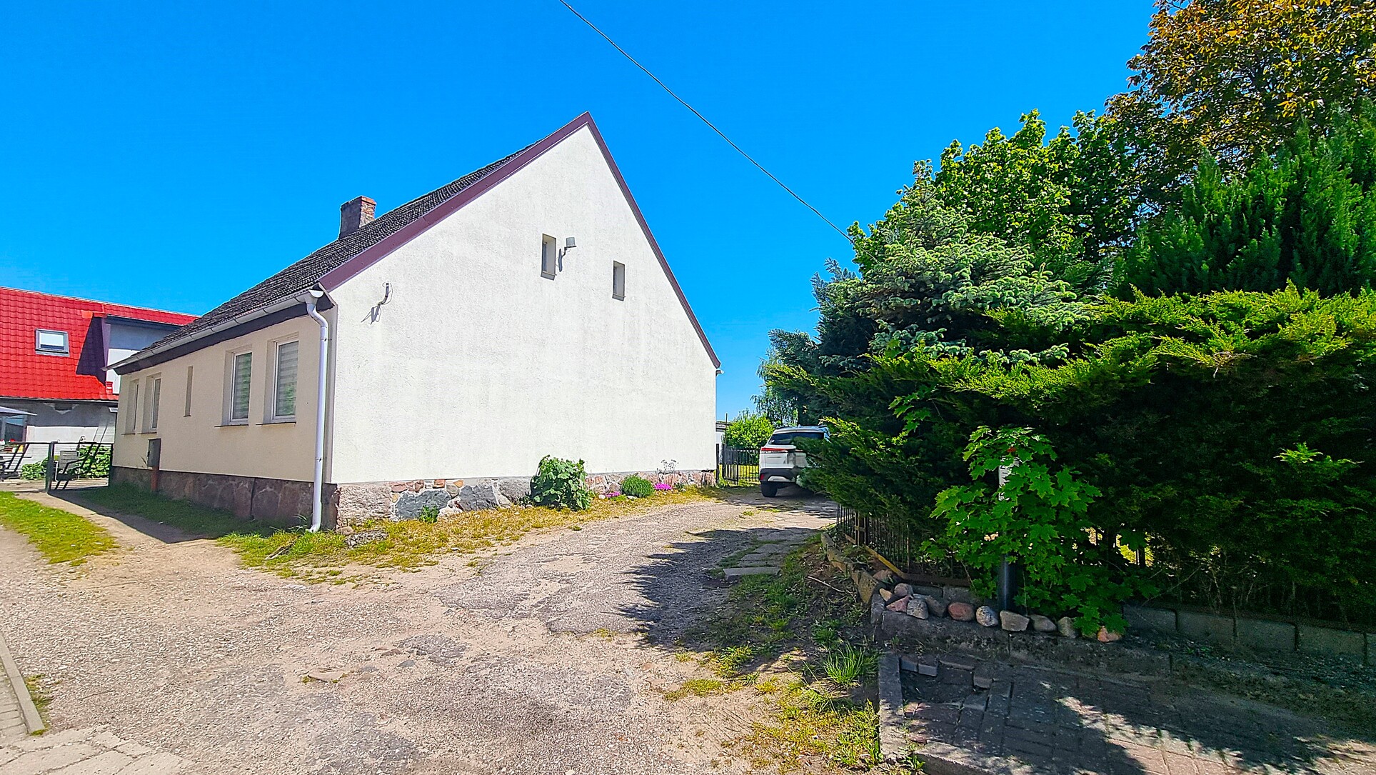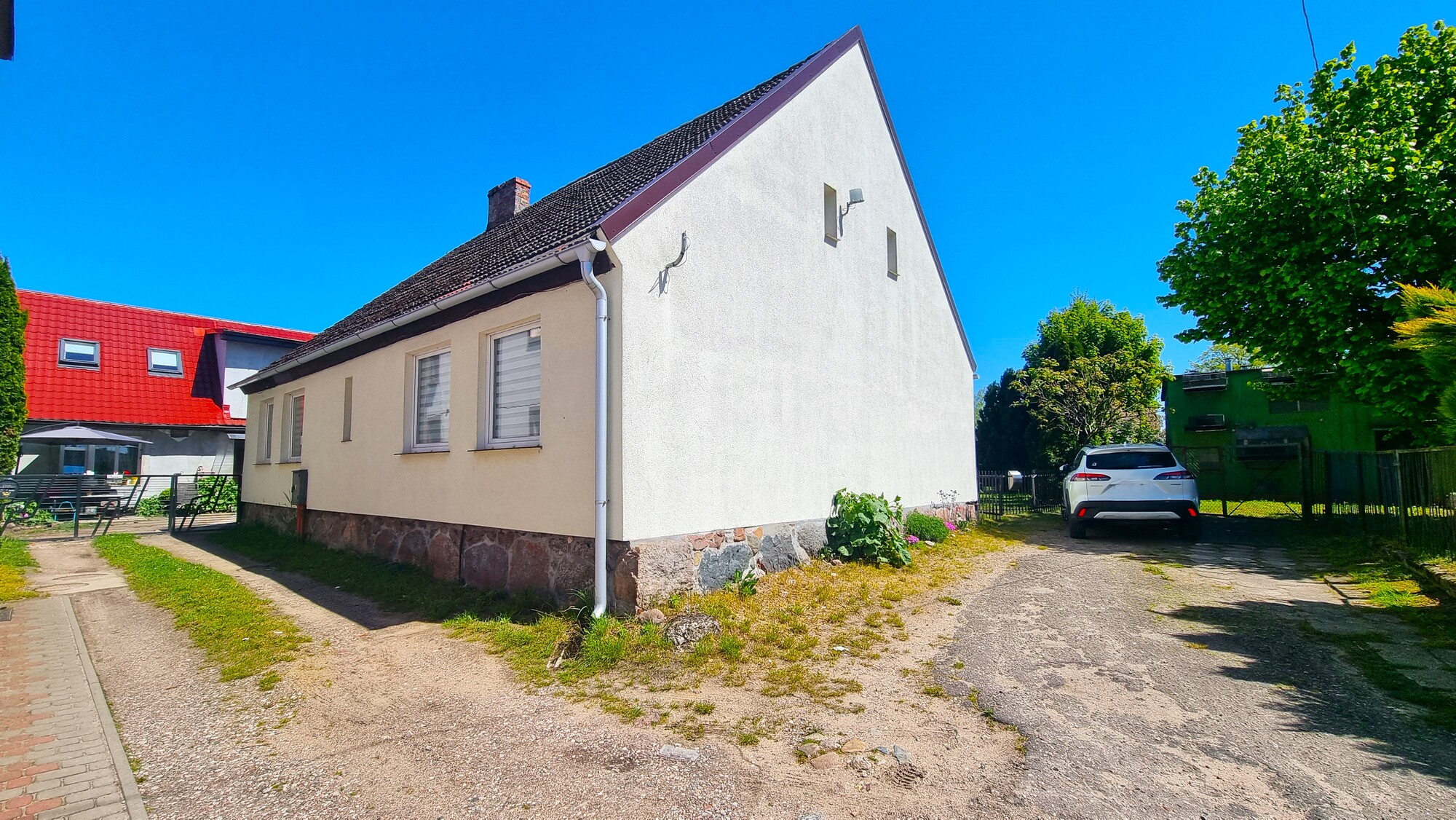 Do budynku prowadzi wspólne wejście oraz korytarz, z którego uzyskujemy dostęp do obu lokali mieszkalnych o łącznej pow. 80,15 m2, a także do wspólnej łazienki oraz wejścia na strych, który oferuje możliwość adaptacji na dodatkową przestrzeń mieszkalną lub użytkową.