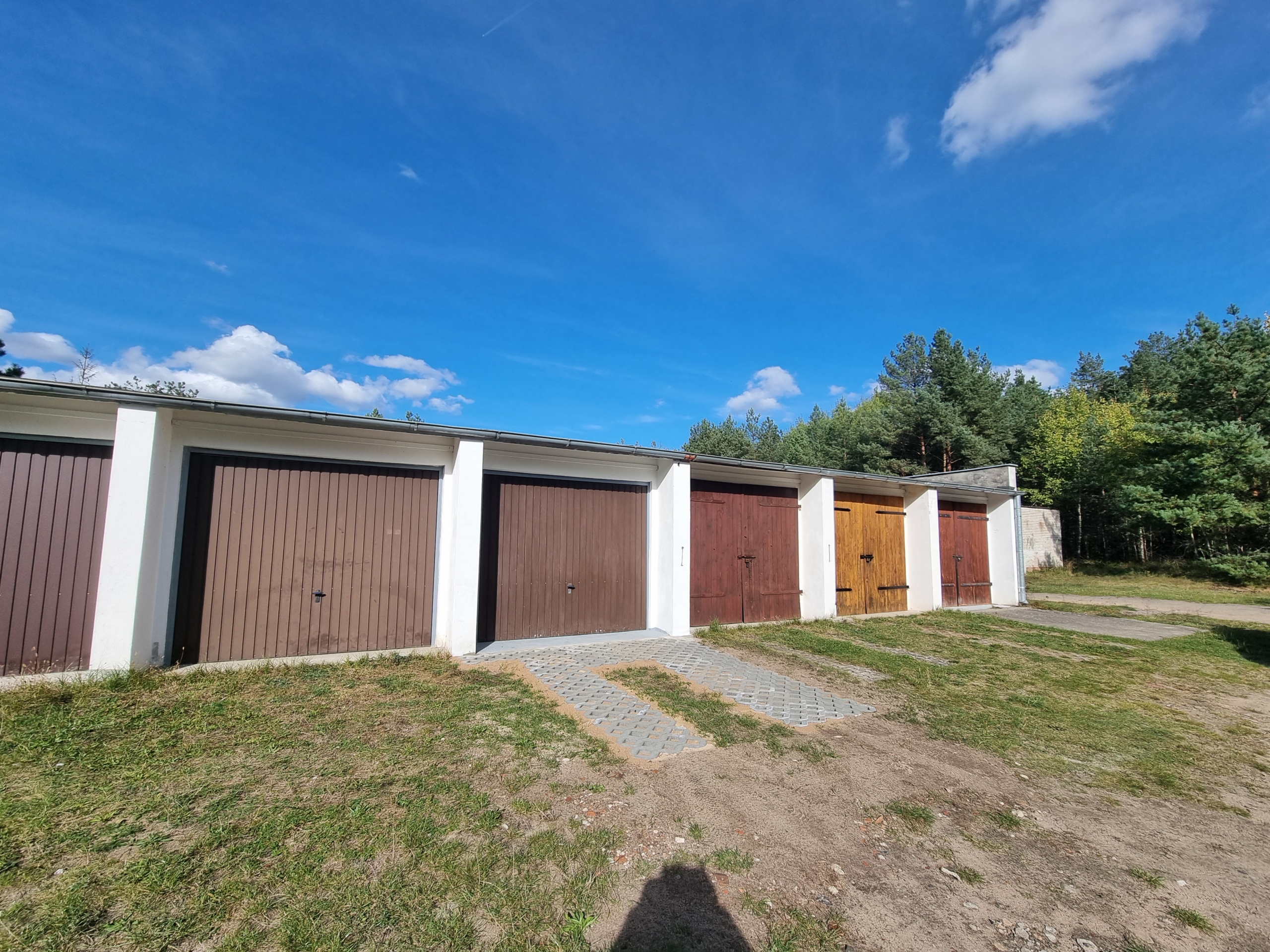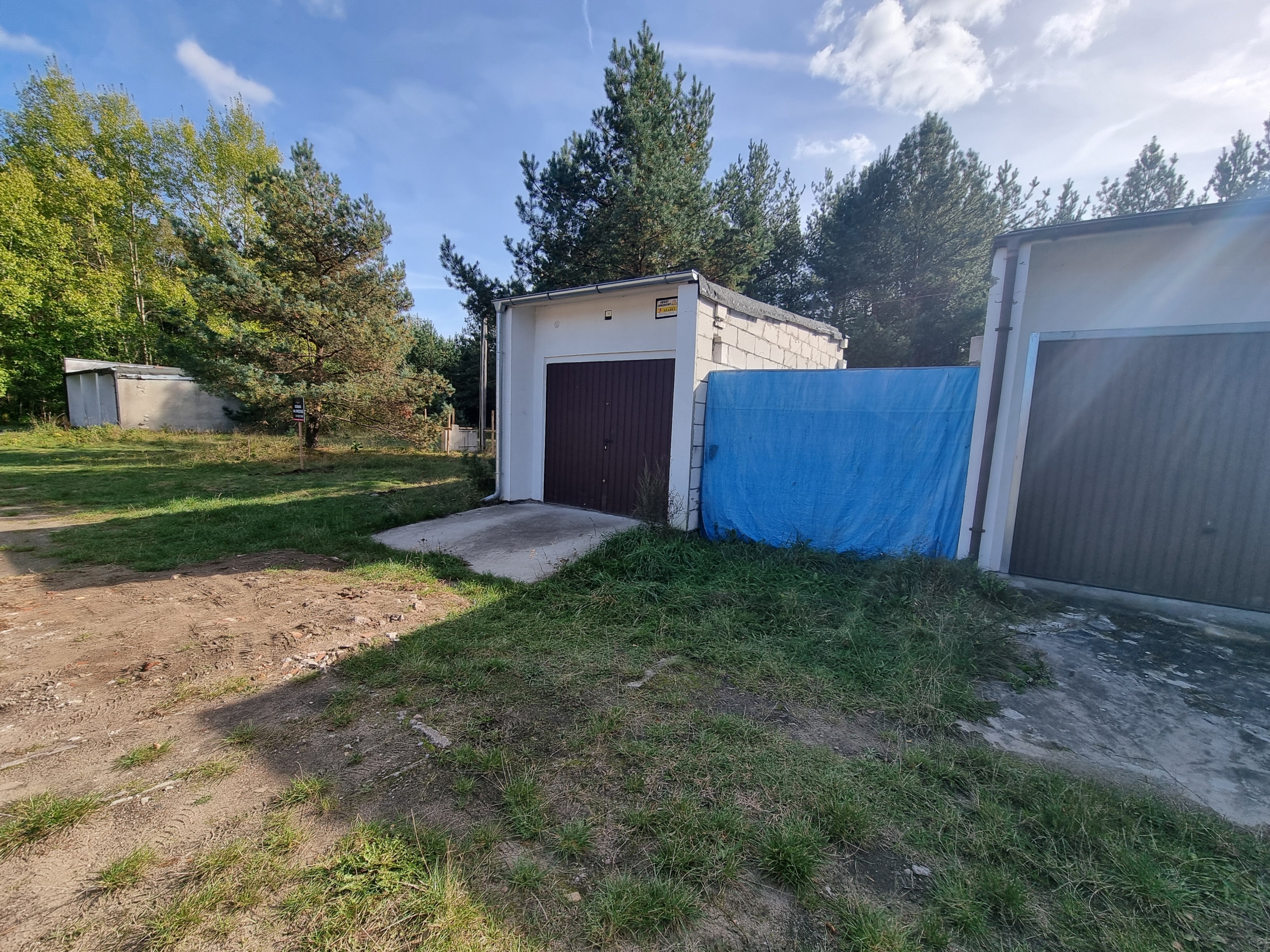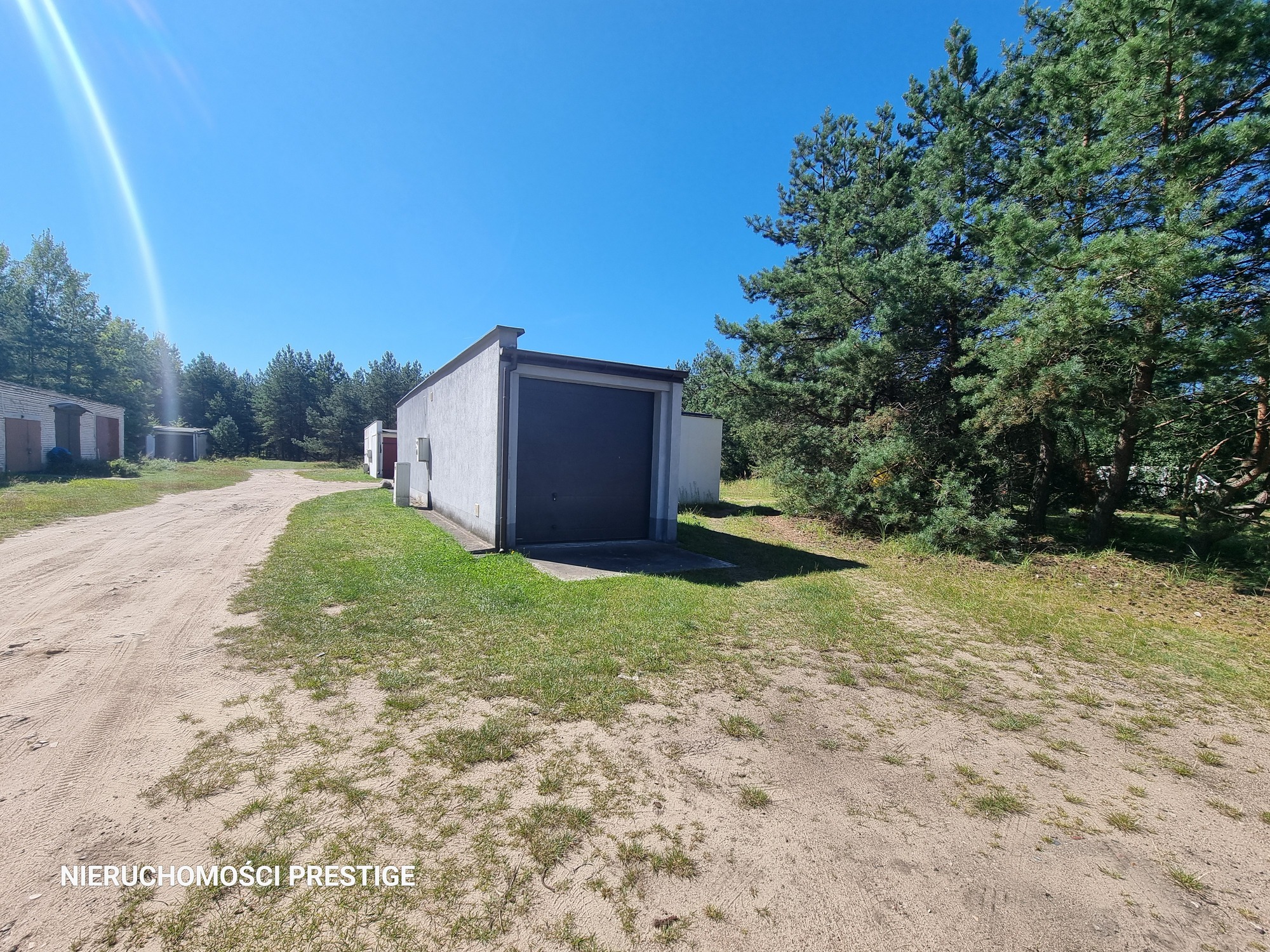 Dojazd z głównej ulicy Wojska Polskiego drogą asfaltową, wjazd do garaży drogą utwardzoną.
