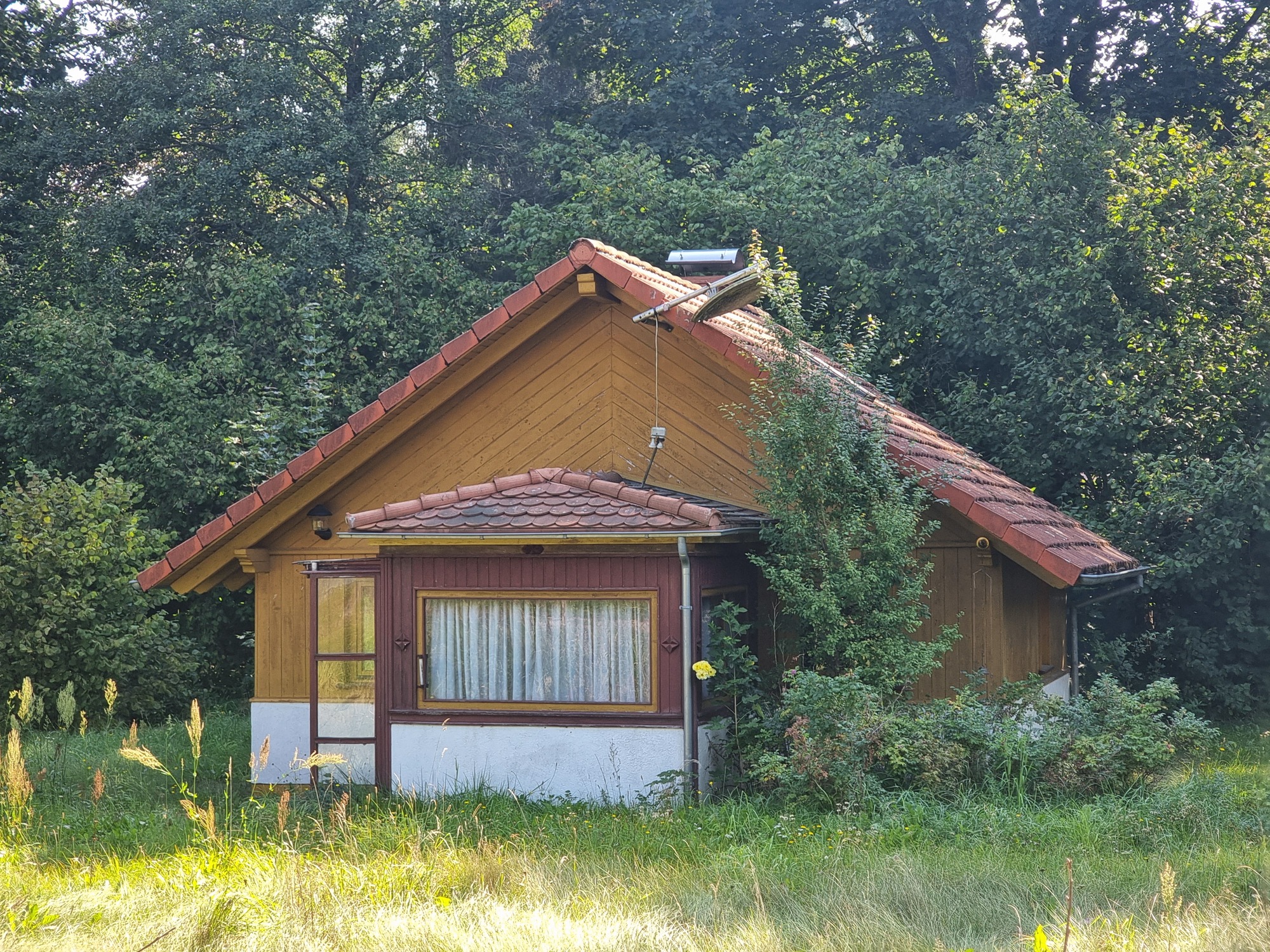Domek ma duży potencjał do przekształcenia w przytulne miejsce na weekendowe wypady lub dłuższe wakacje.