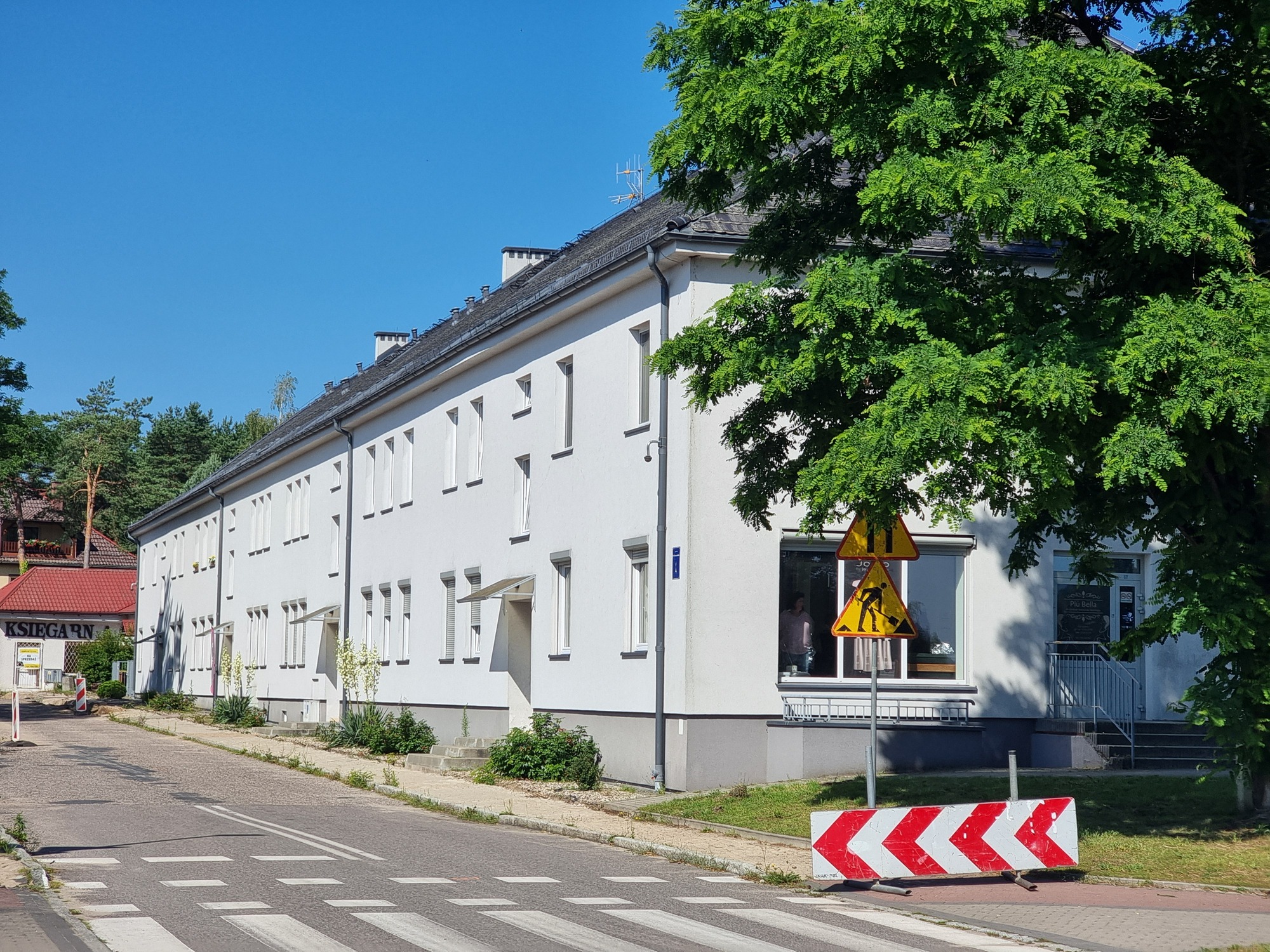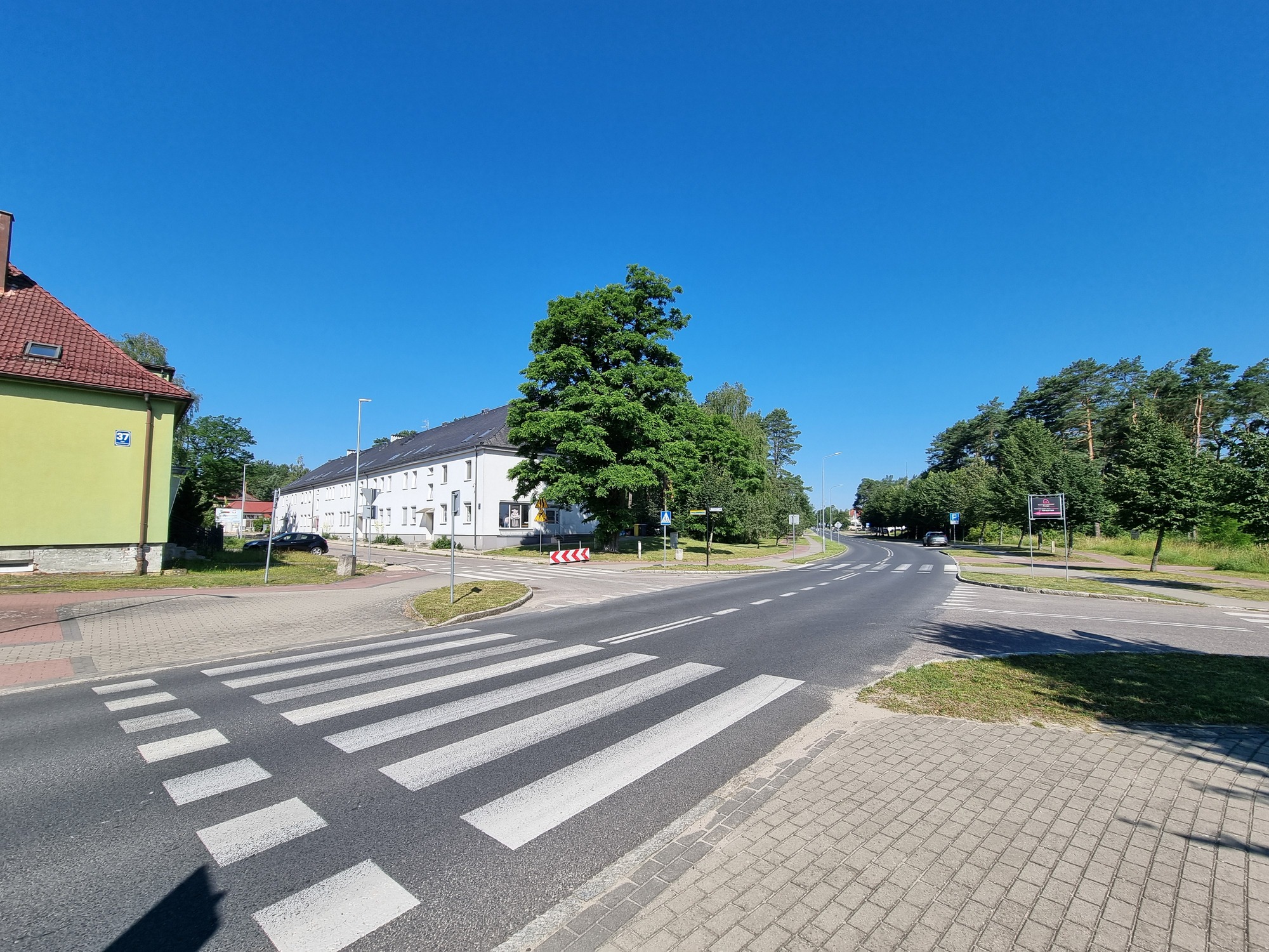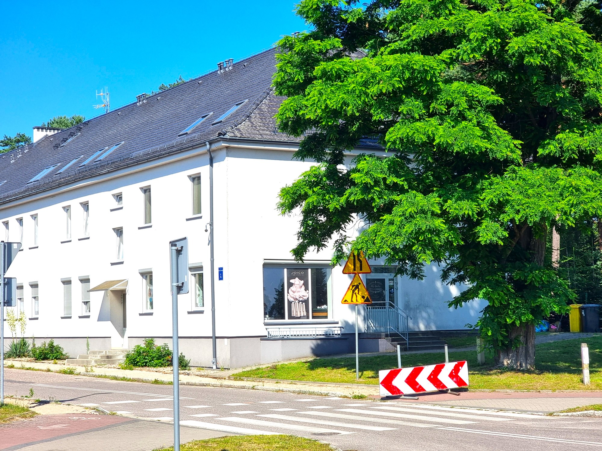 Lokal położony jest w doskonałej lokalizacji – bezpośrednio przy Alei Niepodległości, jednej z głównych ulic Bornego Sulinowa, co zapewnia mu znakomitą widoczność i łatwy dostęp zarówno dla klientów, jak i mieszkańców. Budynek, w którym mieści się lokal, znajduje się na ogrodzonej działce z bramą wjazdową, parkingiem oraz zadbanym terenem zielonym.