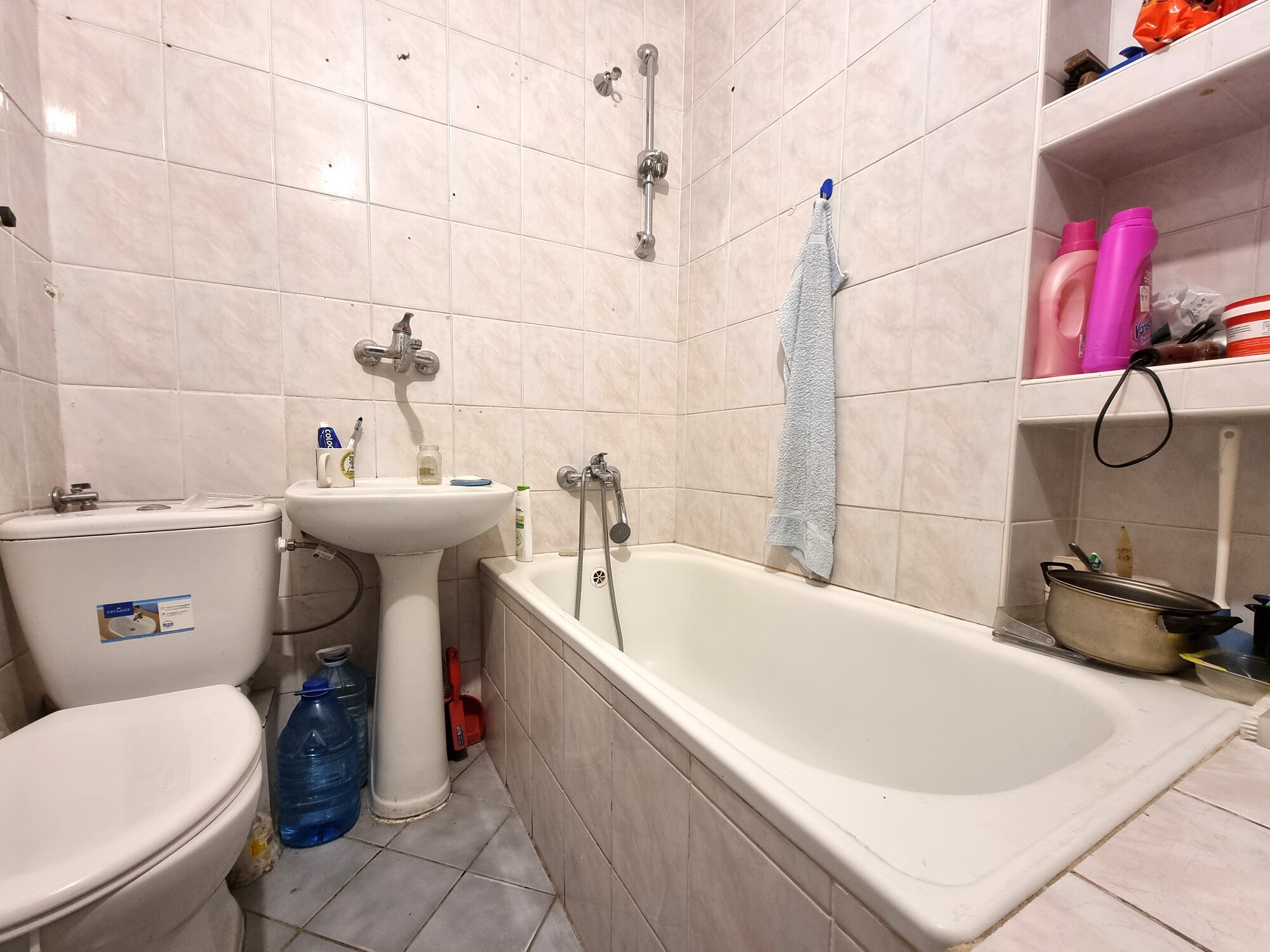 - Łazienka – do remontu, z miejscem na wannę, umywalkę oraz pralkę.