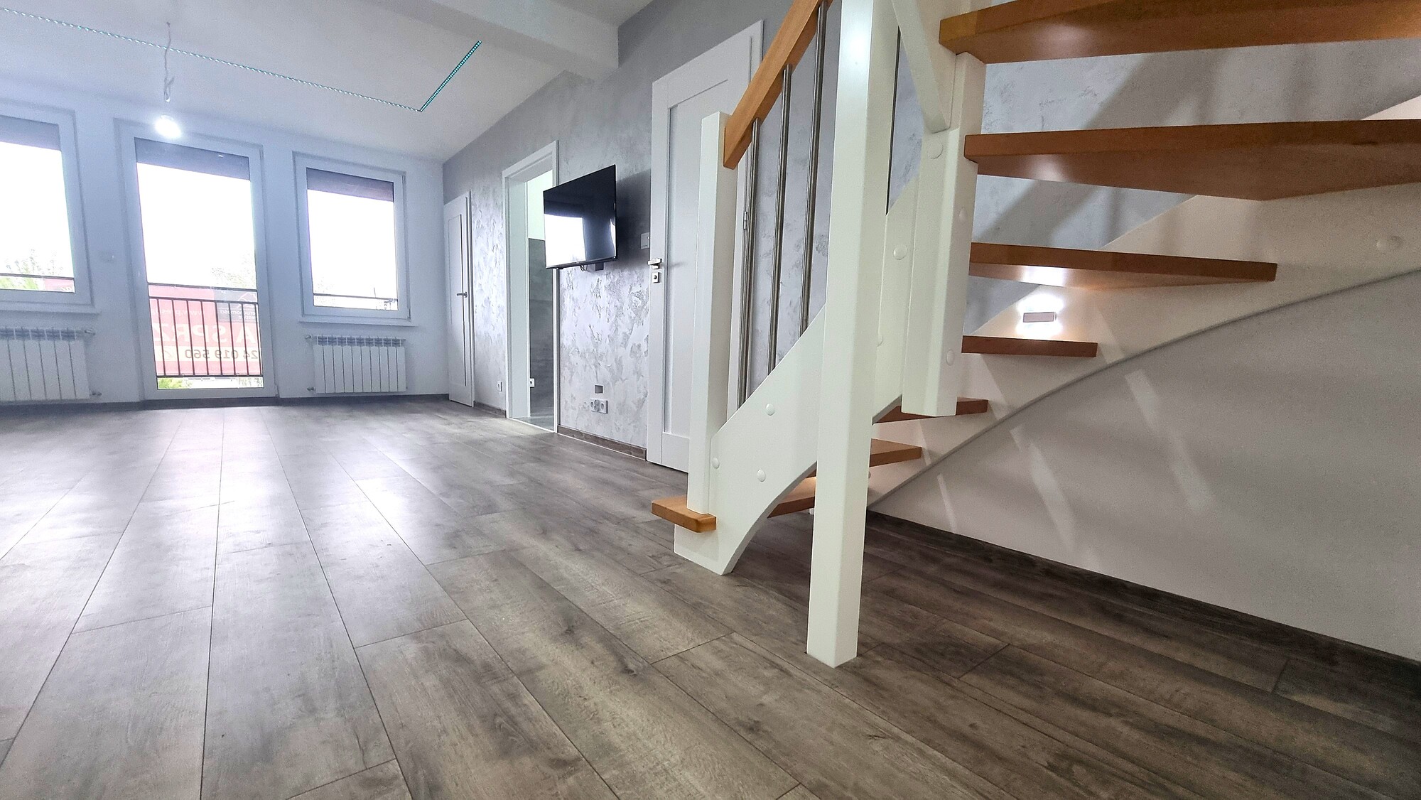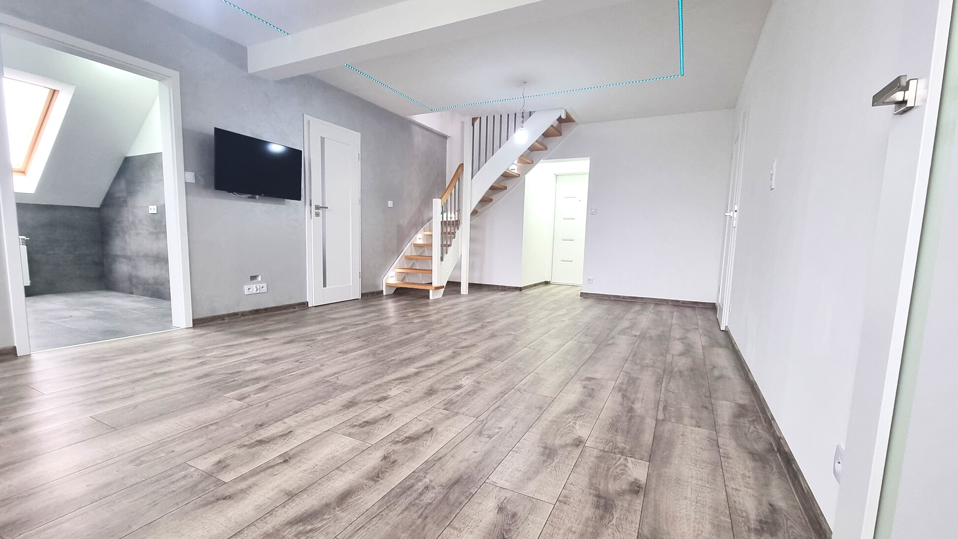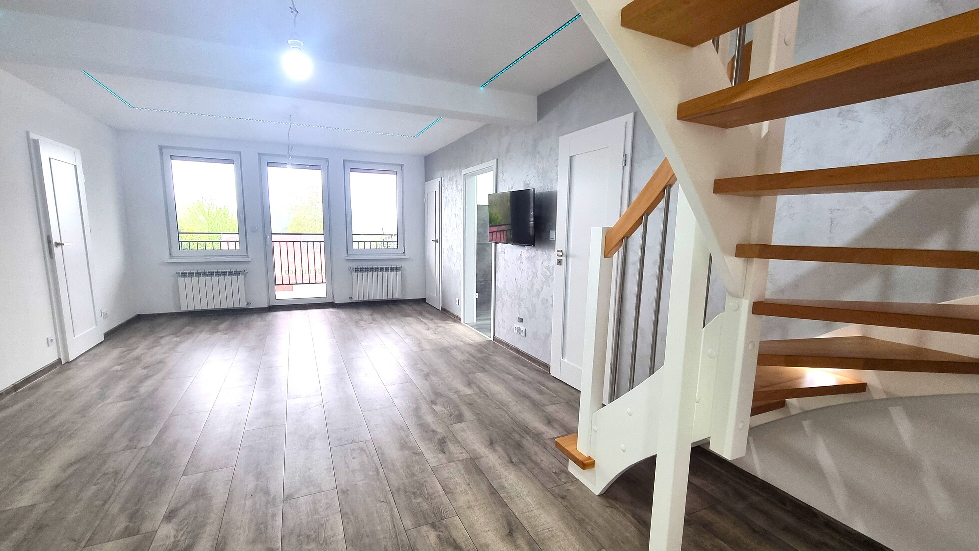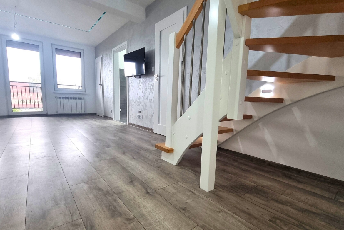 - w salonie i pokojach – nowe, wysokiej jakości panele podłogowe,