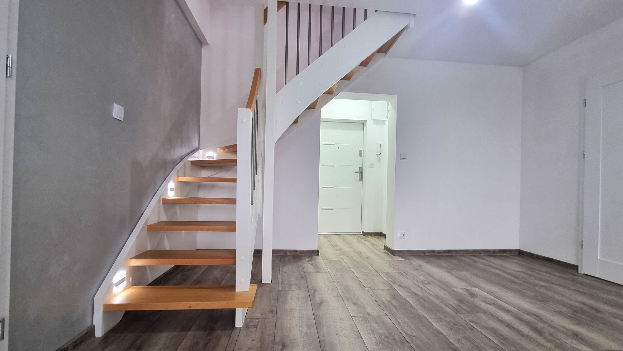 Mieszkanie przeszło generalny remont, zrealizowany z dbałością o szczegóły i nowoczesny styl. Dominującą kolorystyką są szarości i biele, które wprowadzają do wnętrza elegancję i przestrzeń.